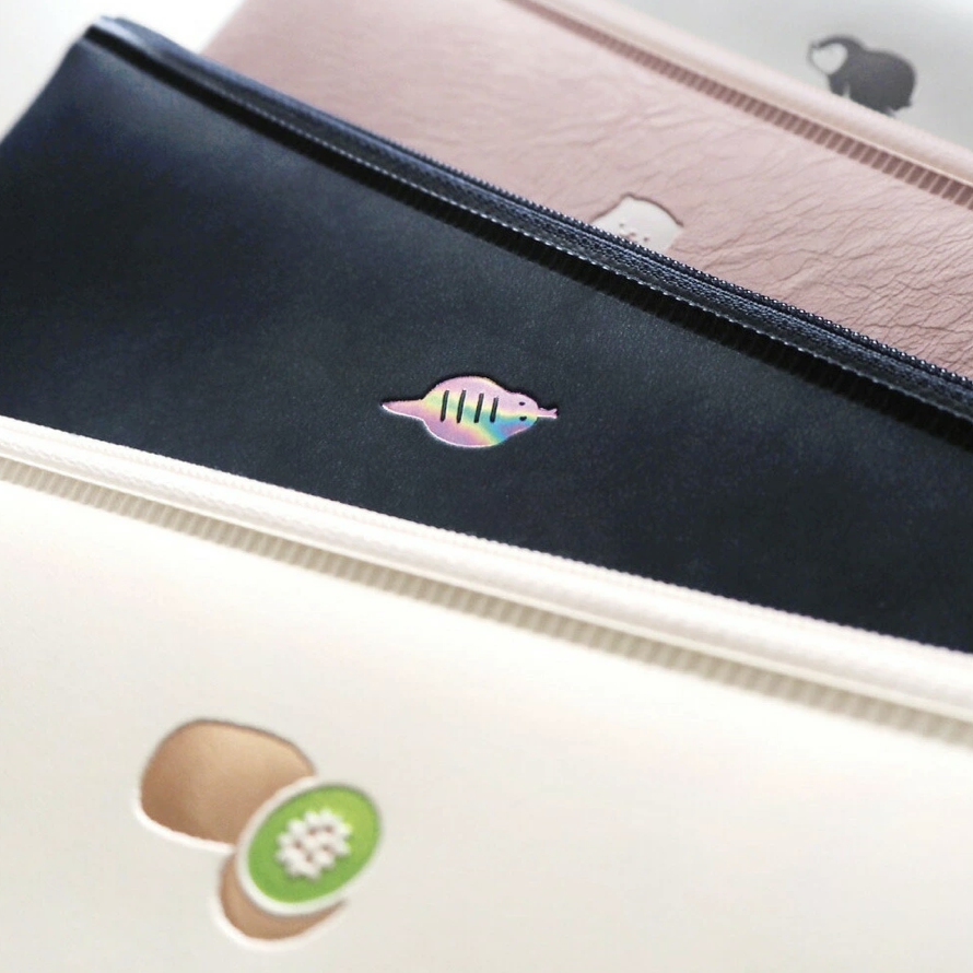 扁平鉛筆盒的新圖案,上面印有流行的動物圖案箔。