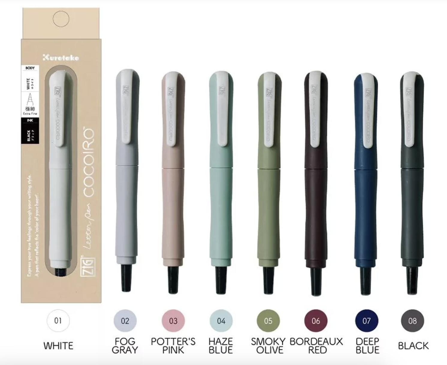 筆身顏色共有8種,皆為貼近日常生活的溫和色調可供選擇。