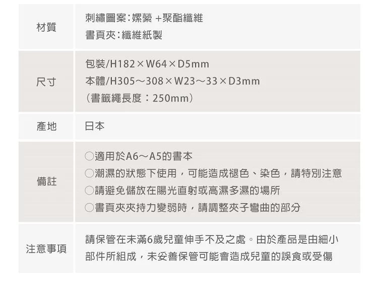 尺寸/ H300-320 ×W14-31×D2mm(書籤長度:270mm)